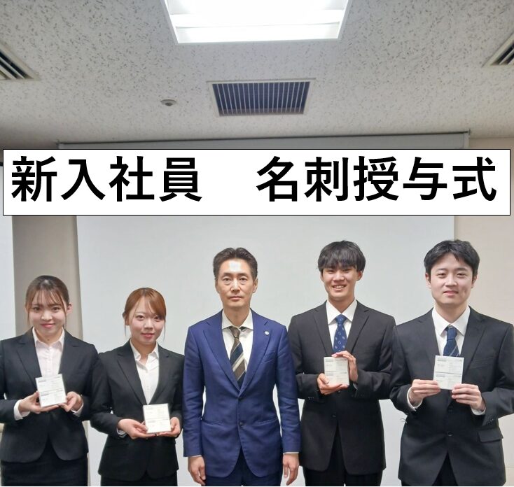 新入社員4名への名刺授与式を行いました