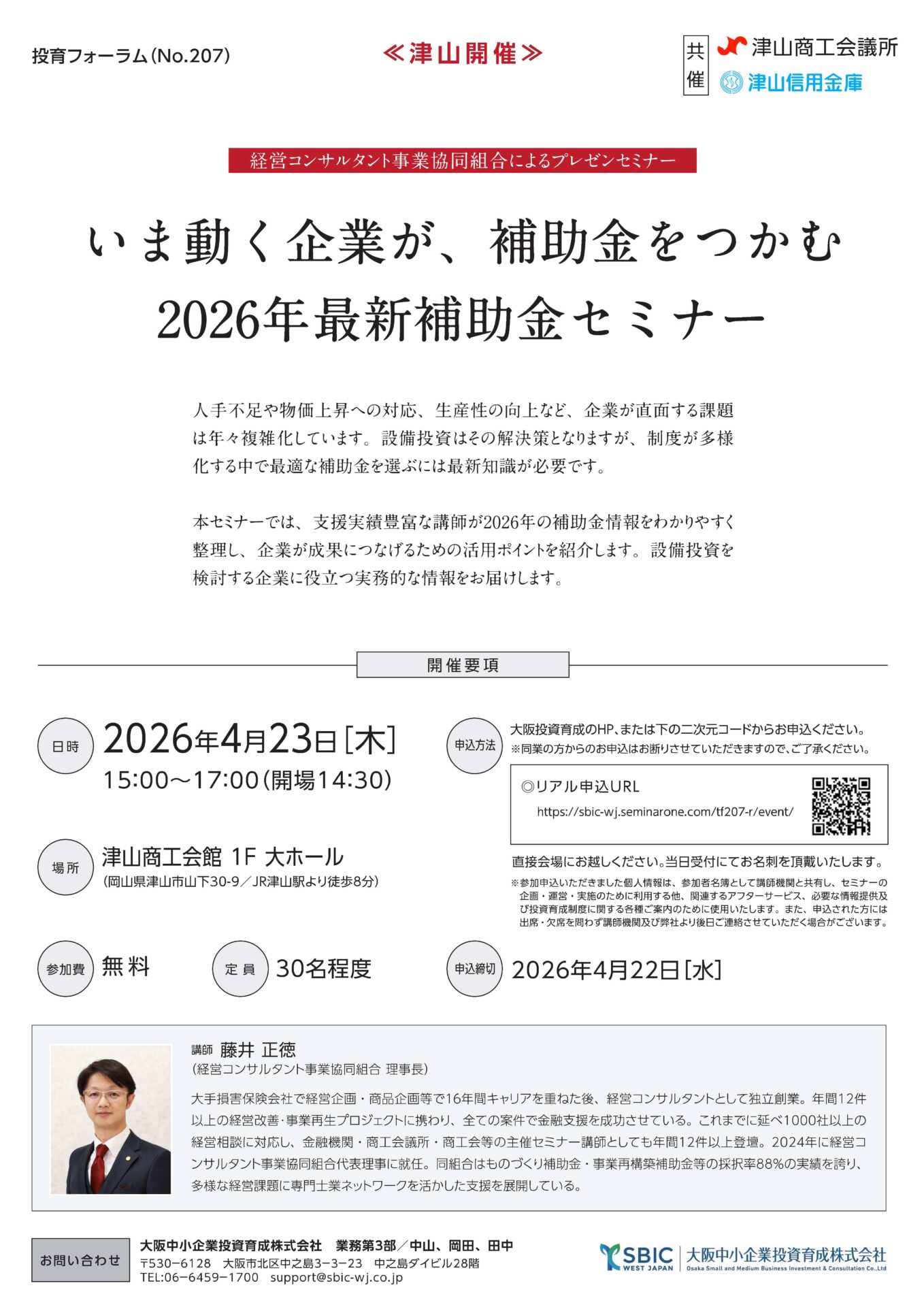 大阪中小企業投資育成株式会社主催のセミナーを、下記のとおり開催する運びとなりました。